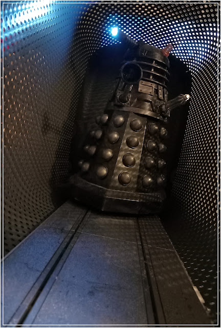 The modified Dalek, with it's gloss varnish coating to give reflections, looked the business under the lights.